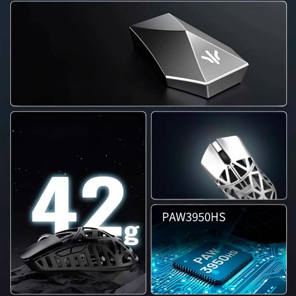 | Комплектация | Мышь *1 Шнур-зонтик USB-C *1 1Кнаноприемник*1 Приемник 8K Geometry*1 Тефлоновая наклейка для ног *1 комплект Противоскользящая наклейка *1 комплект Руководство по эксплуатации *1 Дизайн противоскользящей наклейки *1 DIY противоскользящие наклейки *1 |