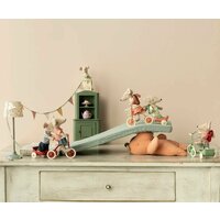 Старшая сестра-мышка Maileg готова к школьному дню, у неё за спиной рюкзак. В лапках мышки - магниты, чтобы она могла держаться за ручки трёхколёсного велосипеда и быстро ехать.