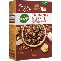 Мюсли 4LIFE хрустящие WHITE CHOCOLATE & BISCUITS с шоколадом и печеньем 3*350гр: сравнение цен, характеристики, фото, актуальное наличие и цены.