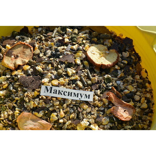 Основные ингредиенты корма - это жмых подсолнечника, зерно пшеницы, кукуруза, лизин, поваренная соль, мука травяная, яблоко, ячмень и витамины B1, B2, B6, D, железо, калий. Витамины и микроэлементы способствуют укреплению иммунитета, улучшению обмена веществ и общему здоровью животного.