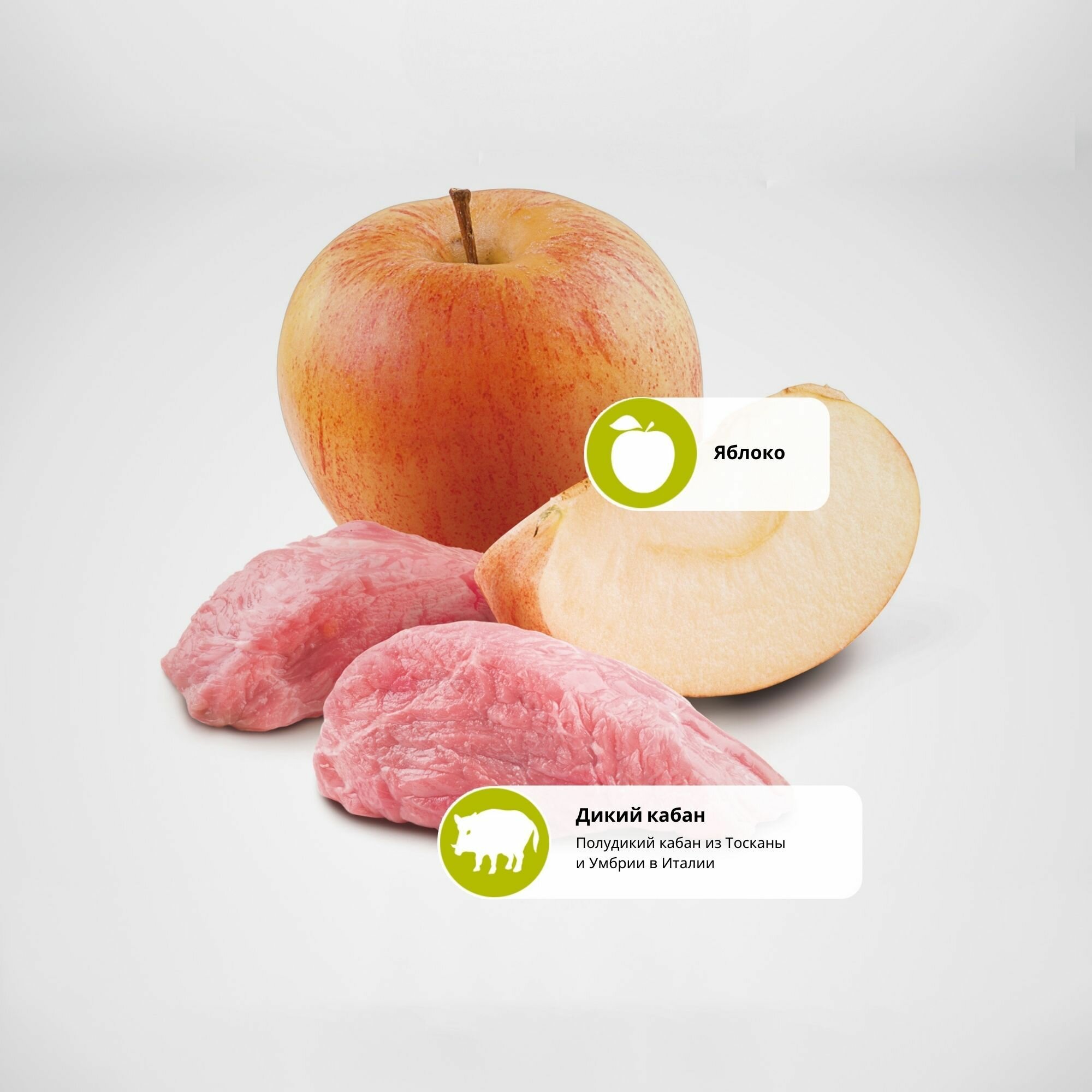 Кабан и яблоко. Полнорационный беззерновой сухой корм для взрослых кошек.