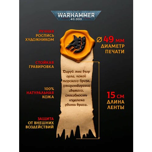 4. Уникальная литания из натуральной кожи: - Литания с молитвой из официального перевода вселенной Warhammer 40k. - Придает изделию премиальный вид. - Устойчива к износу и повреждениям. - Текст выполнен методом гравировки- не сотрется и не смоется.
