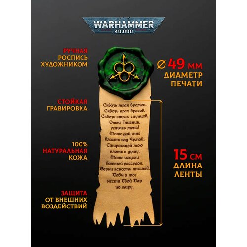 4. Уникальная литания из натуральной кожи: - Литания с молитвой из официального перевода вселенной Warhammer 40k. - Придает изделию премиальный вид. - Устойчива к износу и повреждениям. - Текст выполнен методом гравировки- не сотрется и не смоется.