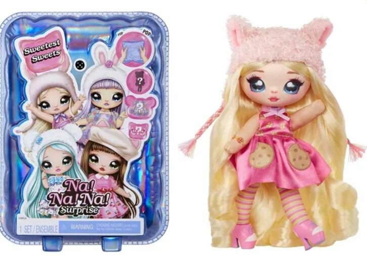 Добро пожаловать в уютный мир Na! Na! Na! Surprise! Знакомьтесь с новой коллекцией кукол-сюрпризов Na Na Na, которая называется Sweetest Sweets (Самые сладкие сладости). Куклы соответствуют названию коллекции - они одеты в милые платья конфетной тематики с мотивами сладостей в дизайне.