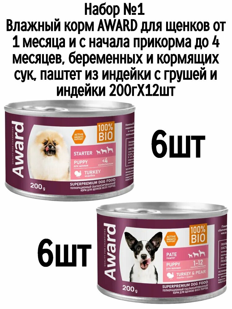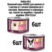 Набор №1 Влажный корм Award для щенков паштет из индейки и индейки с грушей, 12 шт х 200 гр (2 вкуса по 6 шт): сравнение цен, характеристики, фото, актуальное наличие и цены.