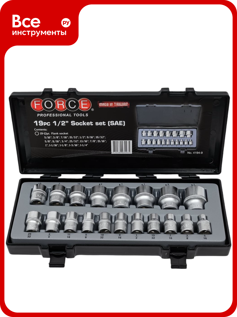 Набор 12 гранных дюймовых головок, 1/2″, 19 шт. FORCE 4194-9: сравнение цен, характеристики, фото, актуальное наличие и цены.