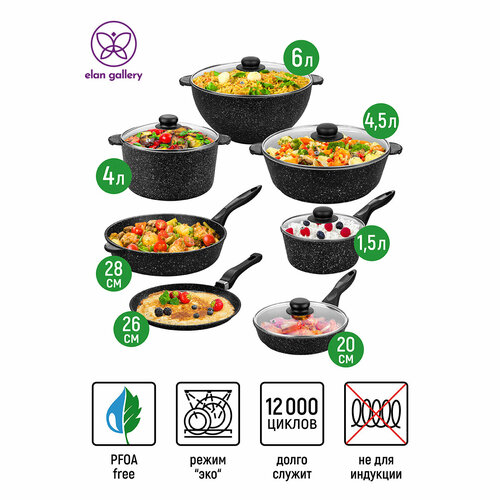 Набор 12 пр. Elan Gallery гармония вкуса Черный мрамор Сковорода 26см,28см,20см, н/р, Ковш, Кастрюля, Жаровня: сравнение цен, характеристики, фото, актуальное наличие и цены.