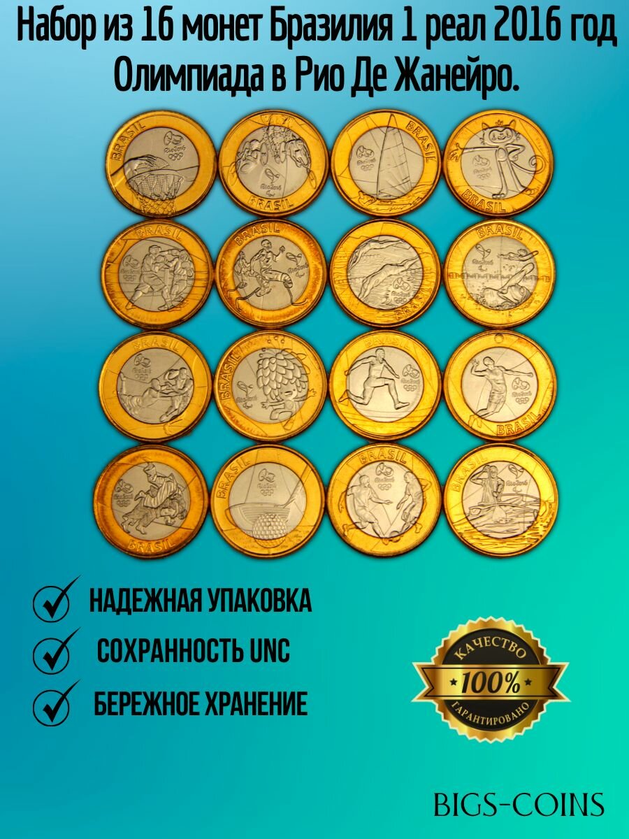 Набор 16 монет Бразилия 1 реал 2016 год Олимпиада Рио Де Жанейро юбилейный коллекционный: сравнение цен, характеристики, фото, актуальное наличие и цены.