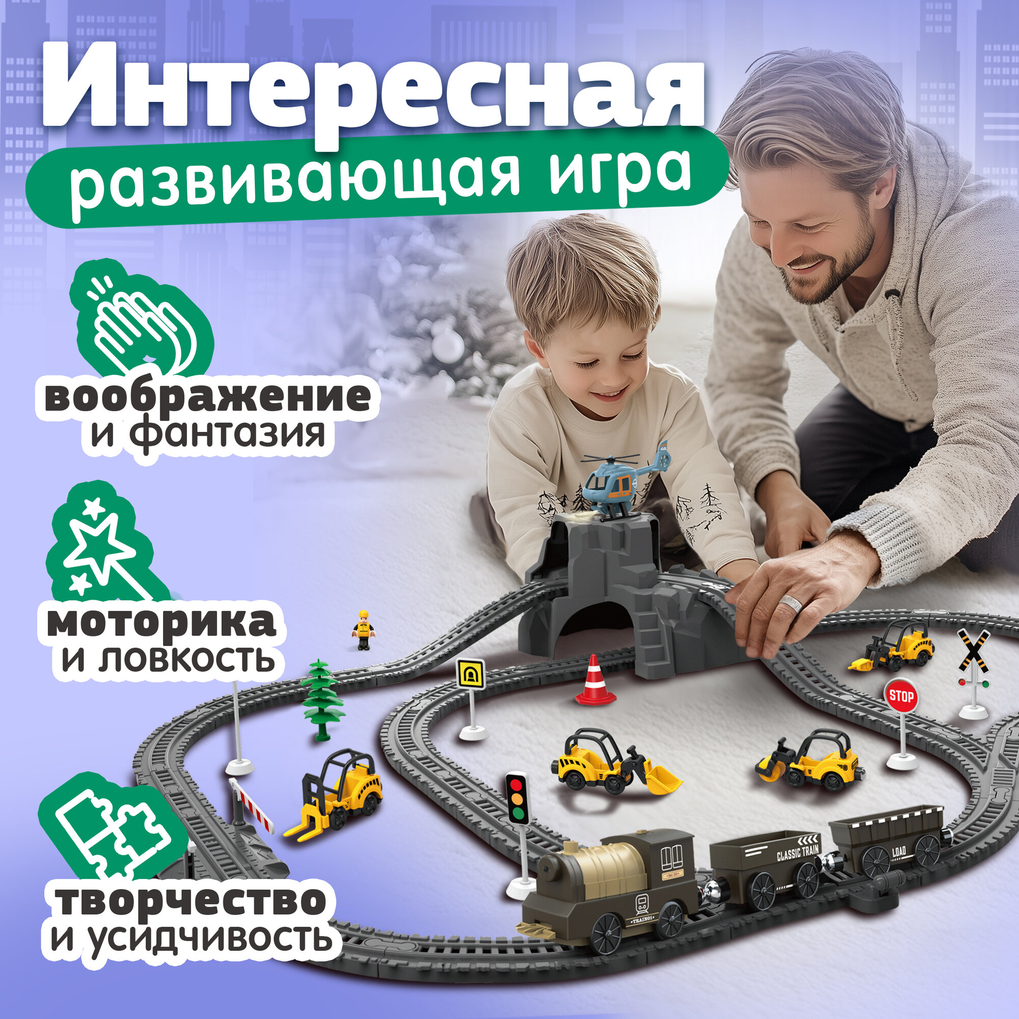 InterCity «Полигон» — это детская игрушка, выполненная в соответствии с высокими стандартами российского бренда игрушек 1TOY и совместимая с известными производителями. Все детали коллекции отличаются высоким качеством, функциональностью и безопасностью для детей от 3-х лет. Игрушки изготовлены из прочных и надёжных полимерных материалов, что обеспечивает их долговечность и комфортную игру. Железная дорога InterCity — это сочетание современных технологий и качественного исполнения. На каждом этапе производства — от выбора сырья до финальной сборки — соблюдаются строгие стандарты качества. Полимерные материалы проходят тщательную обработку, обеспечивая безопасность для маленьких ручек и долгий срок службы. Магнитные элементы и соединения также проходят дополнительные тесты на прочность, чтобы быть максимально надёжными. Совместима с деревянными железными дорогами других мировых производителей, что позволяет расширять игровой мир ребенка. В коллекции представлены: железная дорога с электропоездом, тематические игровые наборы, железная дорога с электропоездом и вагонами большая, поезда игрушечные и аксессуары для построения целого мира, в котором электровоз, электричка, тепловоз отправятся в путешествие! Паровоз детский стимулирует воображение и способствует развитию творческих навыков, так как такие игры для детей позволяют придумывать новые сценарии поездок. Такие игрушки для девочек и мальчиков помогают улучшать координацию движений, идеальны для развития моторики и сил рук. Паровоз на рельсах способствует развитию ловкости и точности движений. InterCity поможет подарить увлекательное путешествие! Наши поезда – это отличный подарок для детей любого возраста, это игрушки для малышей от 3-х лет, игрушки для мальчиков и девочек, дошкольников и школьников. Такие игрушки для детей — это отличный новогодний подарок для детей, подарок на день рождения, 23 февраля, 8 марта или выпускной в детском саду. Это и подарок брату, подарок мальчику и подарок для девочки.