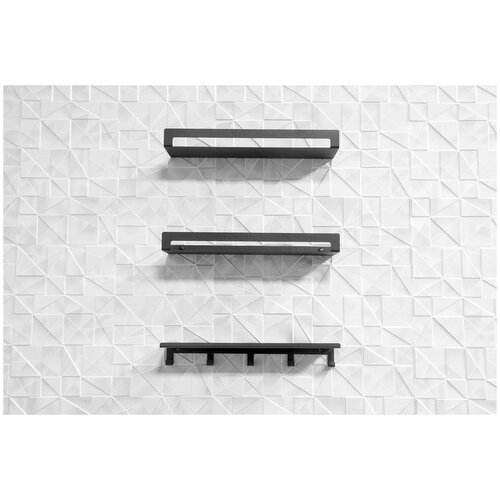 Комплект черных настенных полок с крючками станет стильным акцентов в ванной комнате, прихожей, гостиной, кухне или балконе. Прочные и вместительные полки помогут организовать порядок в доме. На них можно разместить аксессуары, косметику, элементы декора, книги, кухонные принадлежности. Это поможет увеличить полезное пространство вашего дома.