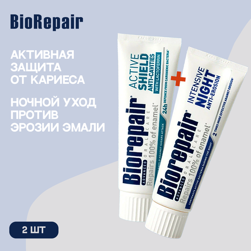 Купить Набор 2 шт. Biorepair зубная паста Active Shield активная защита эмали и Intensive Night Repair ночное восстановление с доставкой по всей России. Набор 2 шт. Biorepair зубная паста Active Shield активная защита эмали и Intensive Night Repair ночное восстановление: сравнение цен, характеристики, фото, актуальное наличие и цены.