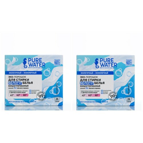 Не рекомендован: для белья из шерсти, шелка, деликатных тканей. Белый цвет — символ чистоты и свободы. Белый цвет в одежде всегда смотрится эффектно и свежо. Если, конечно, белый действительно белый. Белые футболки, белое белье, белые носочки – пара стирок превращает не то что в серый, но и в любой другой цвет радуги. Сохранить чистоту белых вещей, мягкость и свежесть белья без вреда для здоровья способен Стиральный порошок Pure Water. Усиленная формула эффективно справляется с любыми загрязнениями, а 100%-натуральный состав нейтрален для окружающей среды!