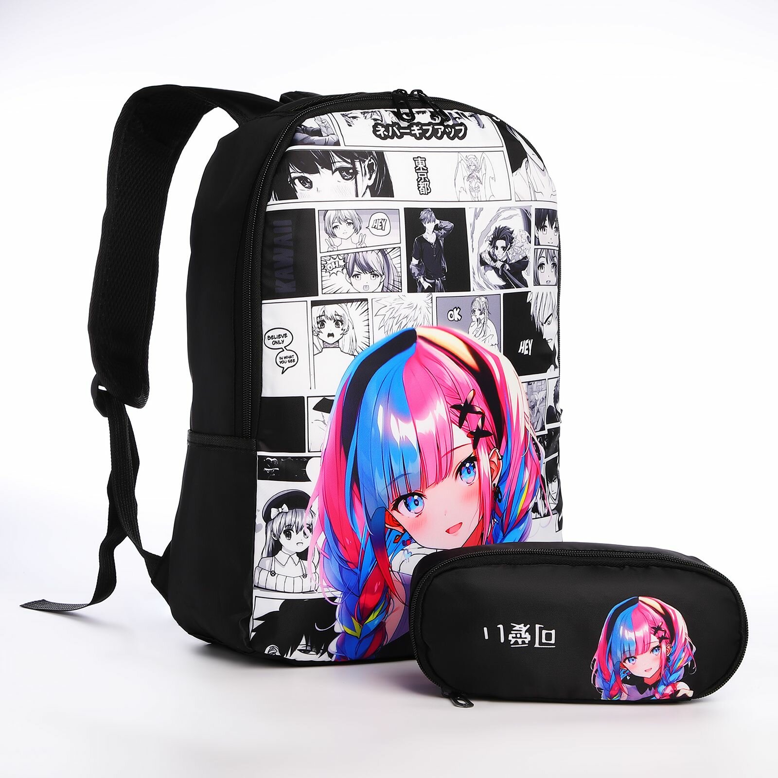 Купить Набор 2 в 1, рюкзак, пенал «Аниме девочка», 42х28х13 см, цвет черный с доставкой по всей России.