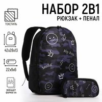 Купить Набор 2 в 1, рюкзак, пенал «Hip-Hop», 42х28х13 см, цвет черный с доставкой по всей России. Набор 2 в 1, рюкзак, пенал «Hip-Hop», 42х28х13 см, цвет черный: сравнение цен, характеристики, фото, актуальное наличие и цены.
