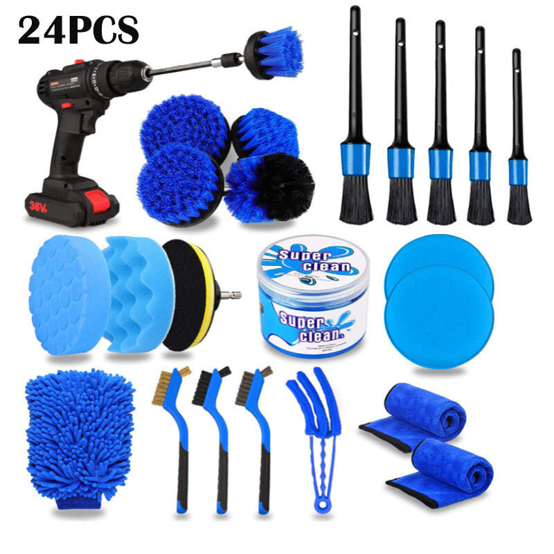 Наш набор включает в себя все самое необходимое для мойки, уборки и поддержания чистоты в машине. Комплект различных кистей для очистки интерьера и экстерьера автомобиля, приборной панели, стеклоочистителей, вентиляционных решеток, сидений и других труднодоступных мест. В наборе мягкая варежка, прочное супервпитывающее полотенце из микрофибры, гель для очистки салона и мойки машины, полировочные диски. 5 автомобильных щеток разных размеров помогут в очистке углов, гаек, колес, вентиляционных отверстий, автомобильных сидений, моторных отсеков, приборных панелей, знаков и т. д. Все аксессуары входящие в набор отличного качества. Они практичные и долговечные, не займут много места для хрпнения в гараже или автомобиле. Комплект из 24 предметов отлично поможет решать основные проблемы автолюбителя и поможет содержать авто в идеально чистом состоянии.