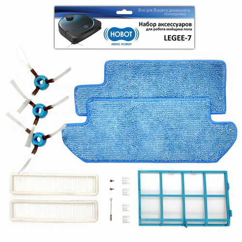 Набор аксессуаров для робота пылесоса с влажной уборкой HOBOT LEGEE-7. В комплект аксессуаров входит: чистящие салфетки из микрофибры - 1 комплект (в комплекте 2 шт.), фильтры воздушные - 2 шт, сменные боковые щетки - 3 шт, фильтр сетчатый - 1 шт, сопло для распыления воды - 1 комплект (в комплекте 4 шт.) Пылевой фильтр для робота пылесоса препятствует попаданию до 100% частичек пыли и различных аллергенов, поглощает неприятные запахи. Замена фильтров на пылесос проводится каждые 3 месяца при регулярной эксплуатации робота. Очищать фильтры и щетки пылесоса нужно после каждой уборки. Замена щеток пылесоса необходима один раз в 6 месяцев. Заботьтесь о роботе пылесосе, вовремя меняйте комплектующие.