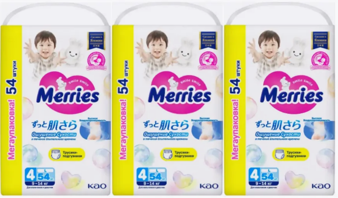 Купить Набор 3 х Merries трусики L 9-14 кг, 54 шт с доставкой по всей России. Набор 3 х Merries трусики L 9-14 кг, 54 шт: сравнение цен, характеристики, фото, актуальное наличие и цены.