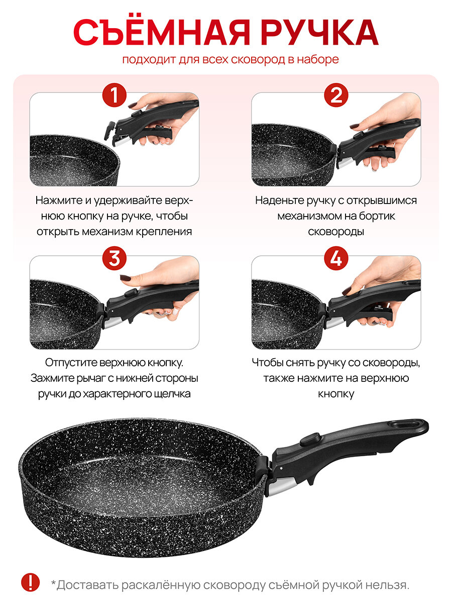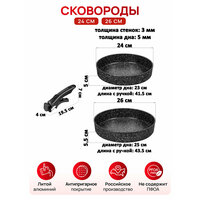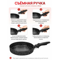 Набор 3 пр. Elan Gallery гармония вкуса Черный Мрамор Сковорода глубокая 24 см + 26 см, съемная ручка, без крышек: сравнение цен, характеристики, фото, актуальное наличие и цены.