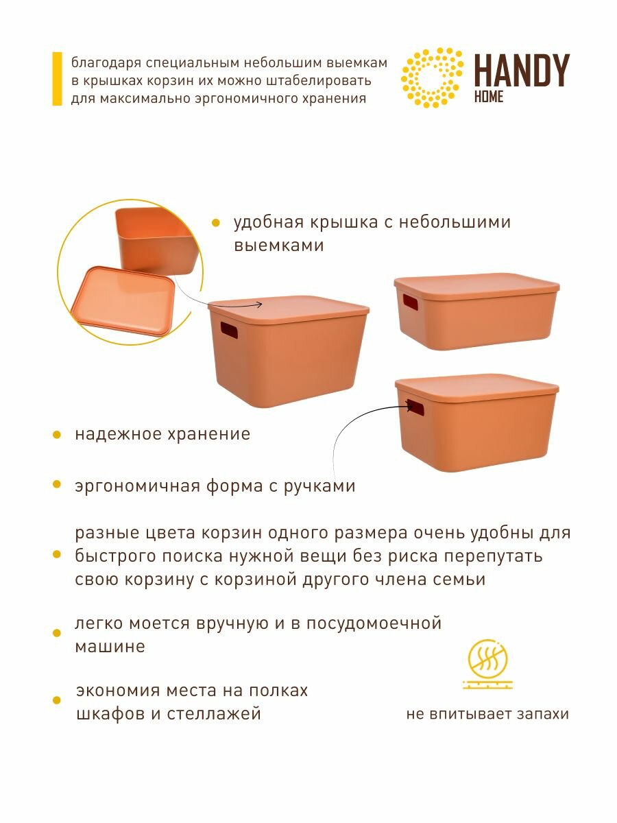 Набор из 3-х корзин пластиковых "Оптима" SET3(Fancy-hh101-XS-S-L) бренда Handy Home, 4,5 л / 6,9 л / 12 л. Корзина-короб для хранения с крышкой из коллекции "Оптима" от Handy Home изготовлена из прочного пластика.