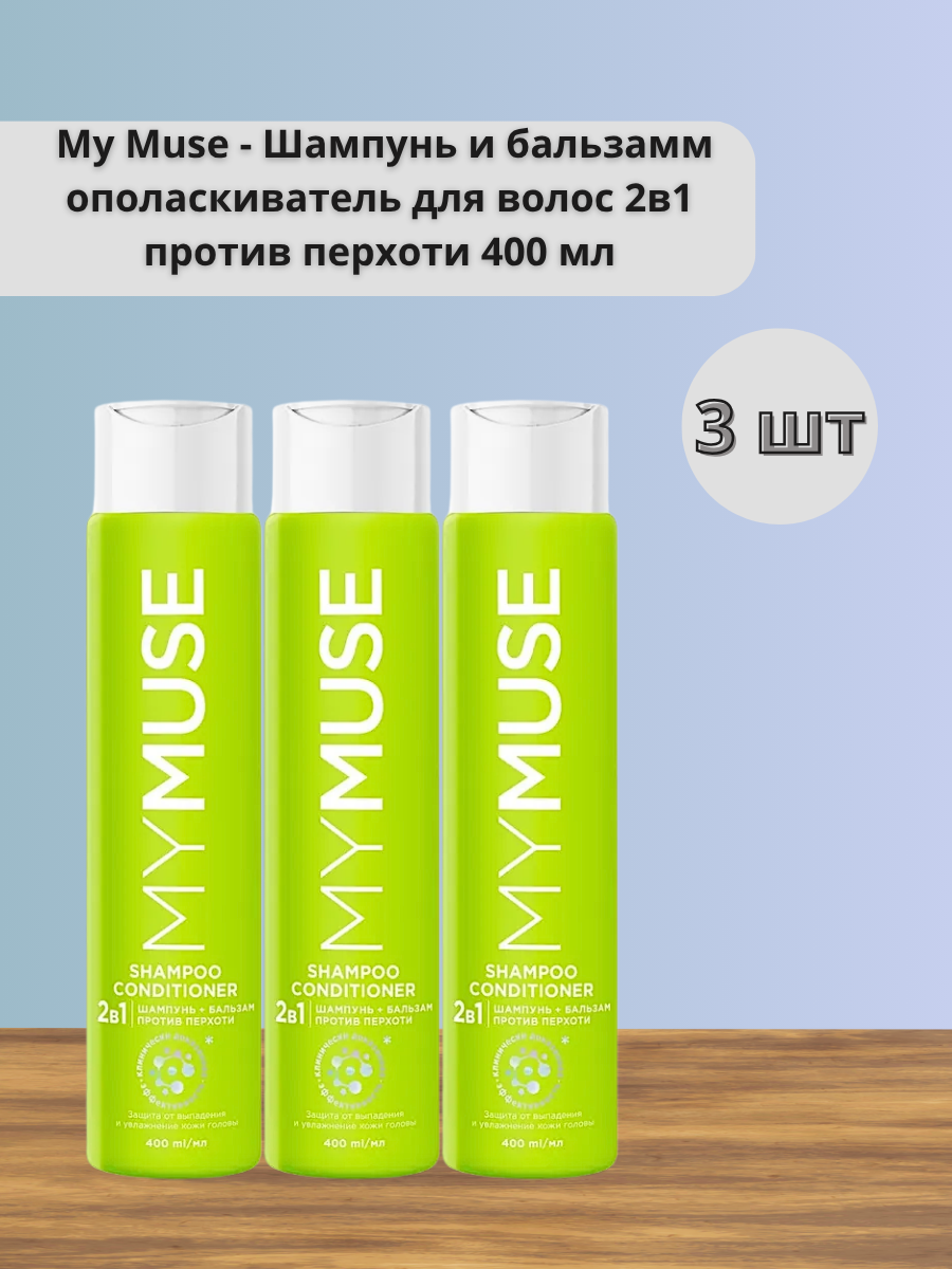 Набор 3 шт My Muse — Шампунь и бальзам ополаскиватель для волос 2в1 против перхоти 400 мл: сравнение цен, характеристики, фото, актуальное наличие и цены.