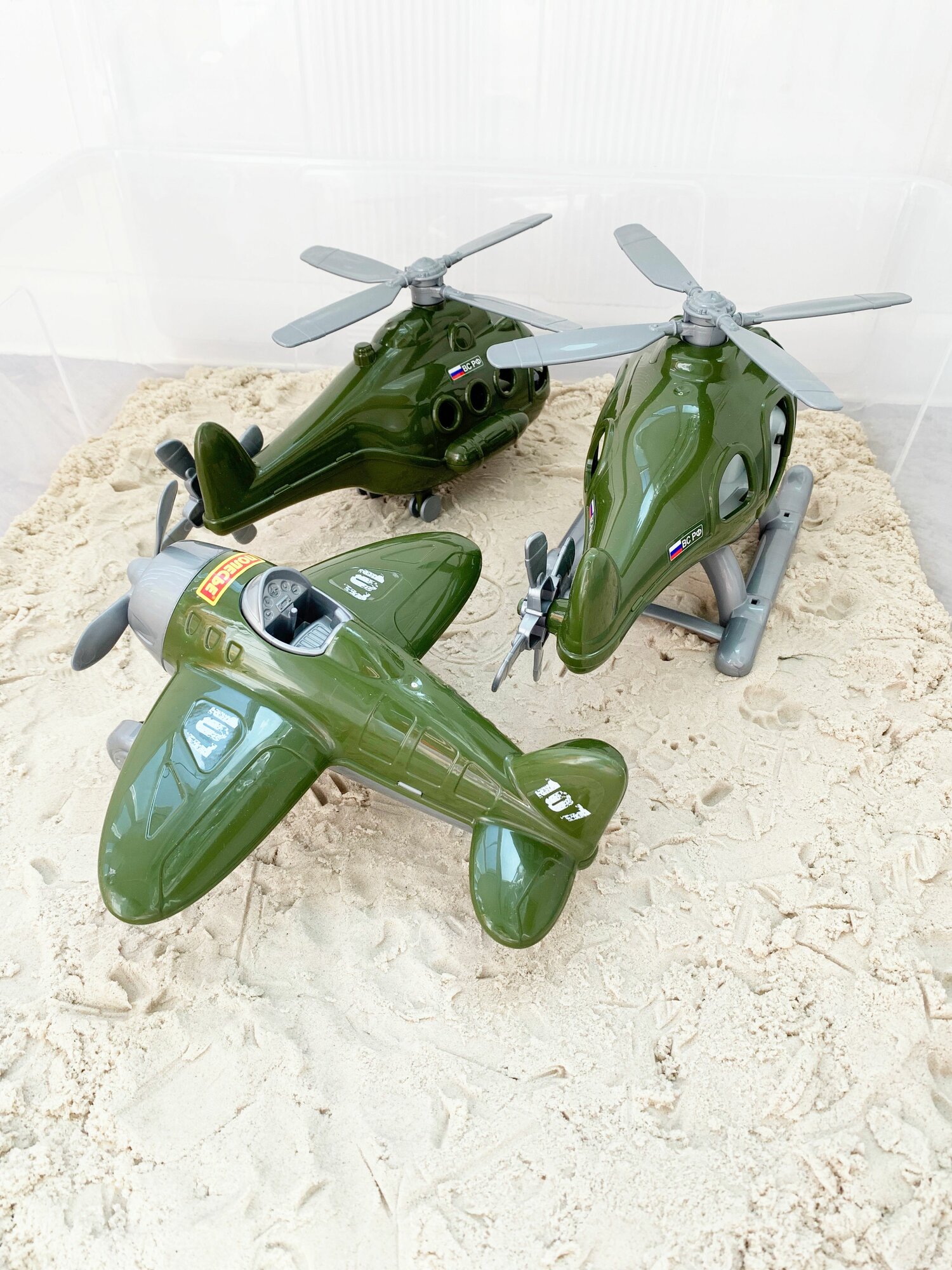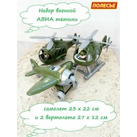 Купить Набор 3 шт. военной авиа техники: ретро самолет 23 см, вертолет Альфа 27 см, вертолет Гром 26,5 см / Полесье с доставкой по всей России.