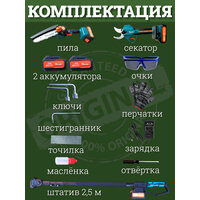 Набор 3в1 мини пила + секатор садовый + штатив Масаки (Masaki) - это набор секатора аккумуляторного + мини пила цепная + телескопическая штанга штатив, идеальные помощники для работы в саду. Комплектация 3 в 1 полностью обеспечивает вас самым необходимым для работы в саду, на даче, стройке, а так же при походах и поездках на природу. Так же данная модель существенно экономит ваши деньги, т. к. с покупкой этой модели вы приобретаете не одно, а сразу ТРИ незаменимых в работе товара.