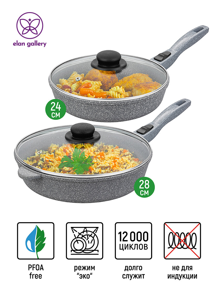 Купить Набор 4 пр. Elan Gallery гармония вкуса Серый мрамор Сковорода глубокая 24 см, 28 см + крышки, съёмные ручки с доставкой по всей России. Набор 4 пр. Elan Gallery гармония вкуса Серый мрамор Сковорода глубокая 24 см, 28 см + крышки, съёмные ручки: сравнение цен, характеристики, фото, актуальное наличие и цены.