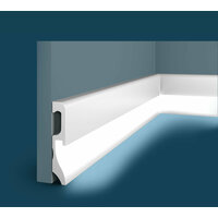 Плинтус напольный Cosca Decor - декоративный и защитный элемент отделки помещений для соединения (сокрытия щели) между полом и стеной. Данный плинтус имеет нишу для диодной ленты с подсветкой