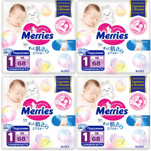 Купить Набор 4х Merries подгузники NB (до 5 кг) 68 шт с доставкой по всей России. Набор 4х Merries подгузники NB (до 5 кг) 68 шт: сравнение цен, характеристики, фото, актуальное наличие и цены.