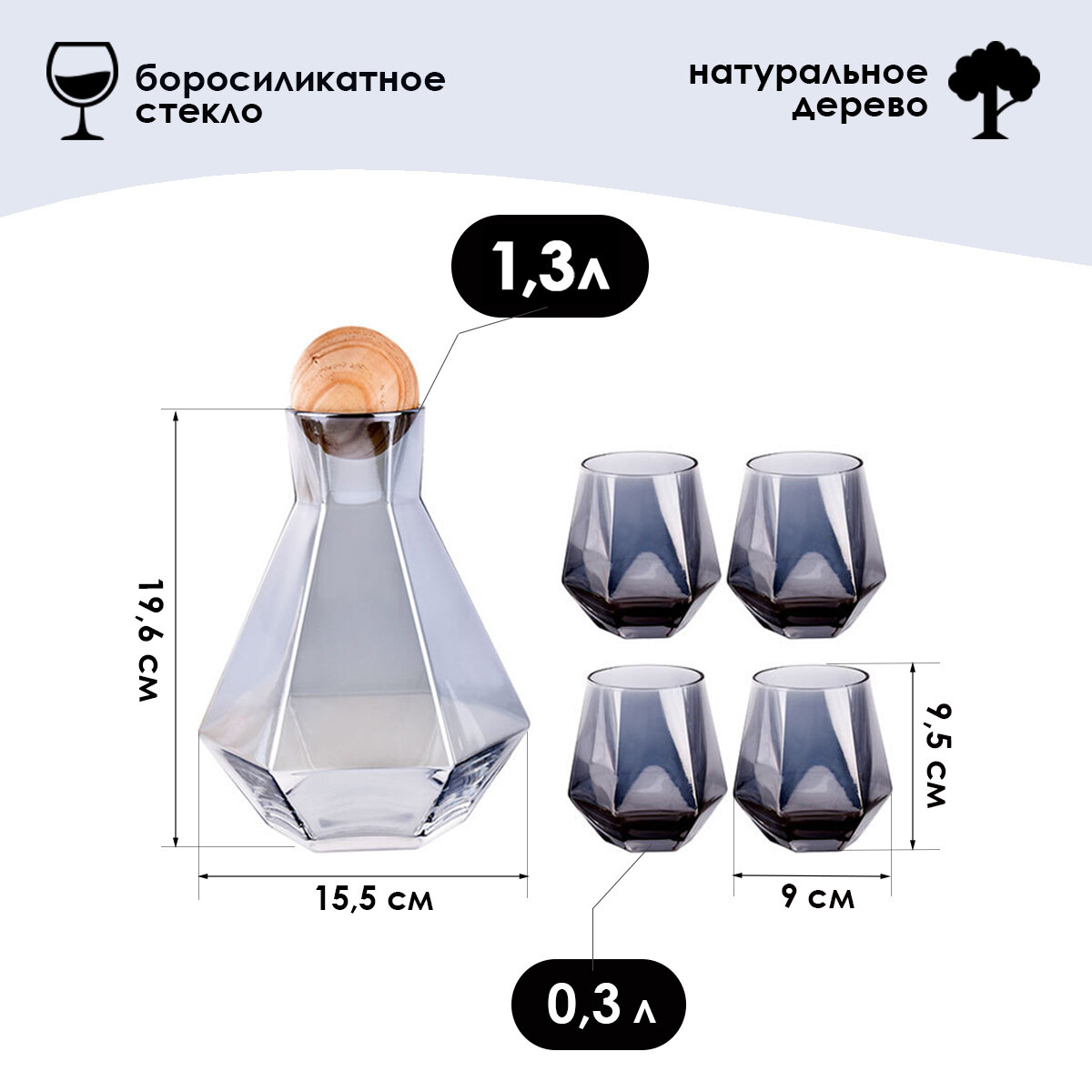 Набор 5 в 1, декантер 1,3 л, 4 стакана, цвет черный, 24,5х17,5х40,5 см, Marma MM-GRAF-12: сравнение цен, характеристики, фото, актуальное наличие и цены.