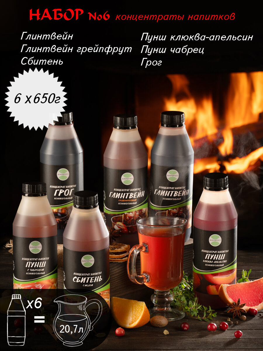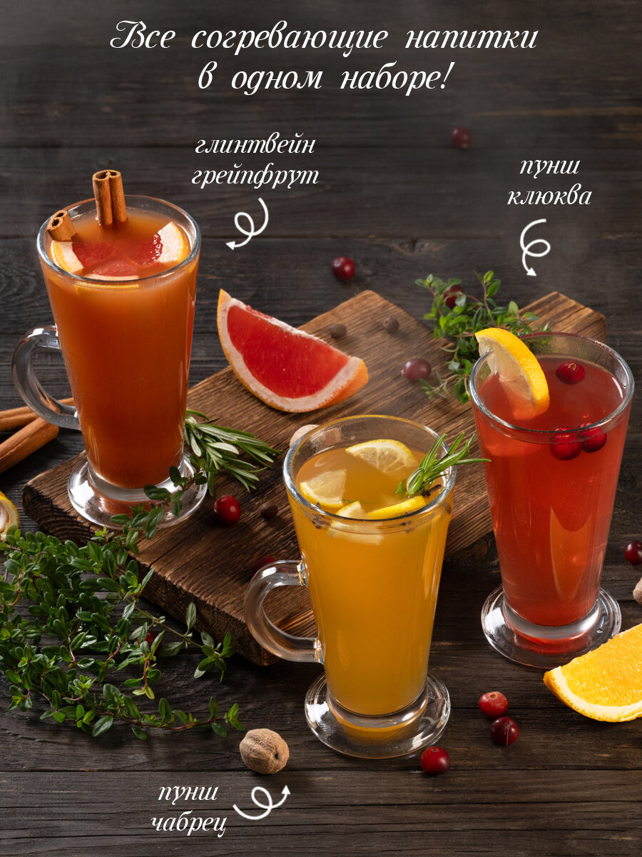 Набор 6 напитков (Глинтвейн, Сбитень, Грог, Глинтвейн Грейпфрутовый, Пунш Клюква-Апельсин, Пунш с Чабрецом) концентрированные безалкогольные (6 шт по 650 гр): сравнение цен, характеристики, фото, актуальное наличие и цены.