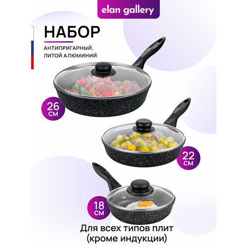 Набор 6 пр. Elan Gallery гармония вкуса Черный мрамор Сковороды глубокие 18 см, 22 см, 26 см, 3 крышки, несъемные ручки: сравнение цен, характеристики, фото, актуальное наличие и цены.
