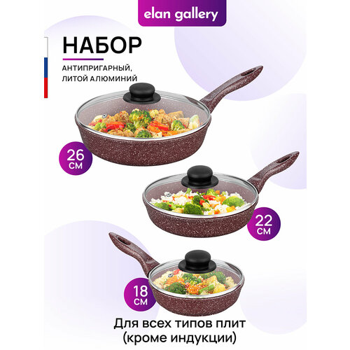 Набор 6 пр. Elan Gallery гармония вкуса Рубин Сковороды глубокие 18 см, 22 см, 26 см, 3 крышки, несъемные ручки: сравнение цен, характеристики, фото, актуальное наличие и цены.