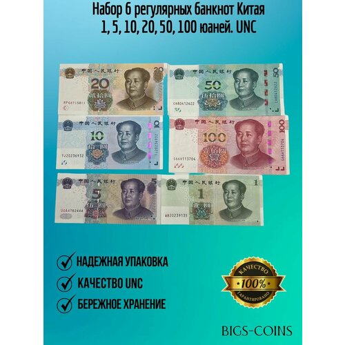 Набор 6 регулярных банкнот Китая 1, 5, 10, 20, 50, 100 юаней. UNC: сравнение цен, характеристики, фото, актуальное наличие и цены.