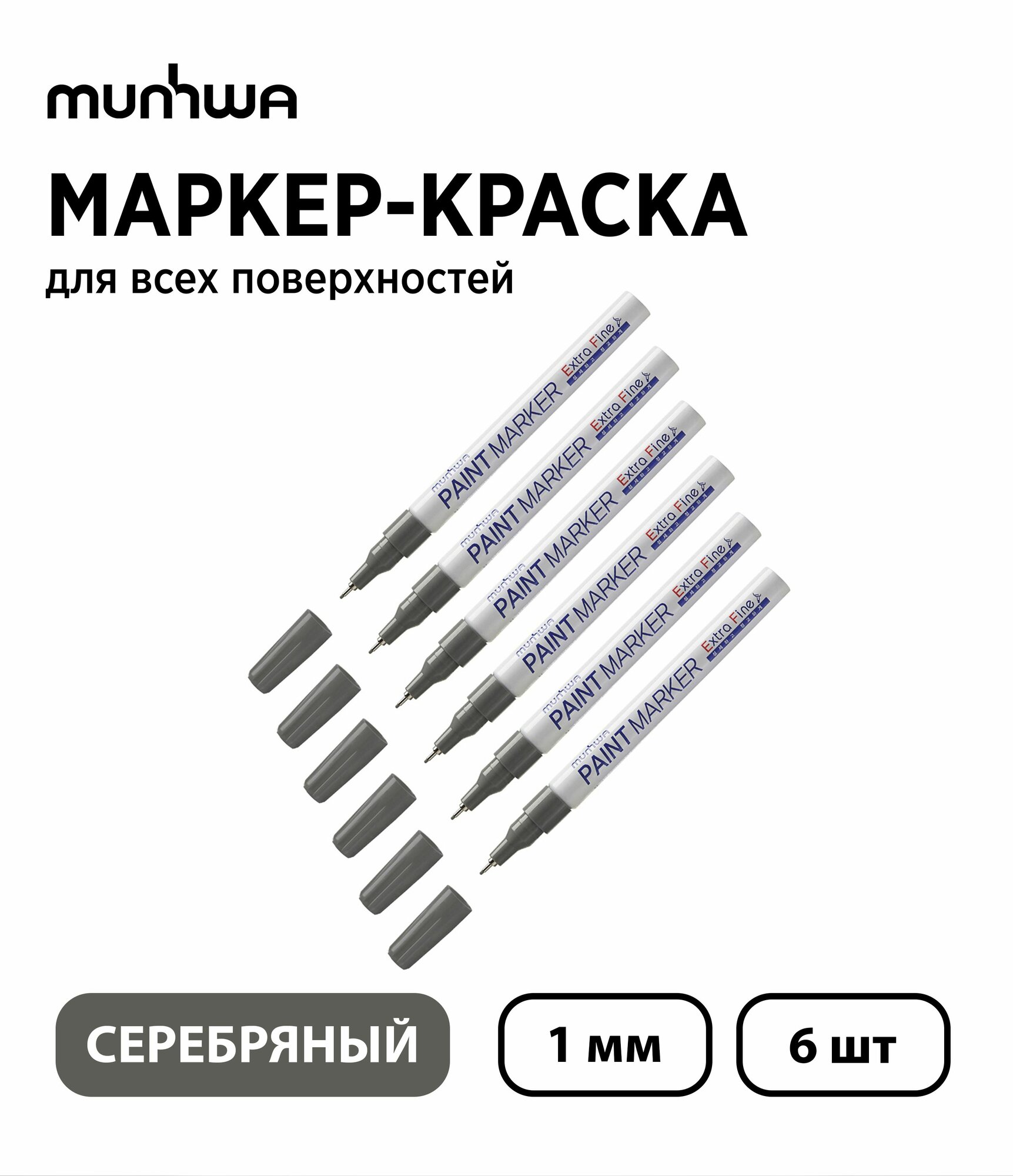 Набор 6 шт. — Маркер-краска MunHwa «Extra Fine Paint Marker» серебро, 1 мм: сравнение цен, характеристики, фото, актуальное наличие и цены.