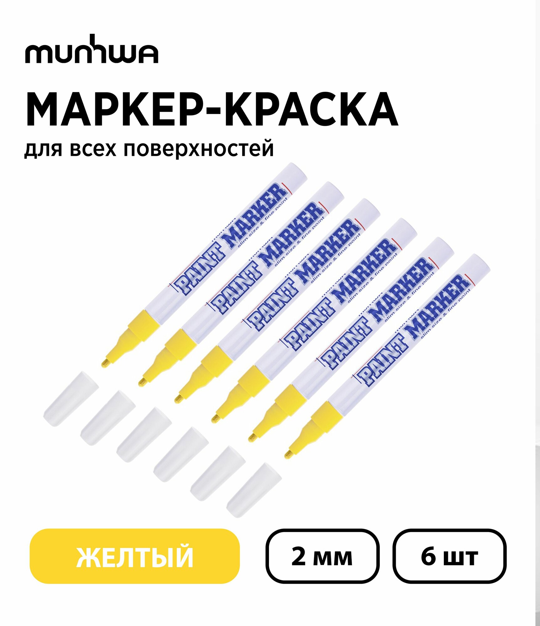 Набор 6 шт. — Маркер-краска MunHwa Paint Marker «Slim» желтая, 2 мм: сравнение цен, характеристики, фото, актуальное наличие и цены.