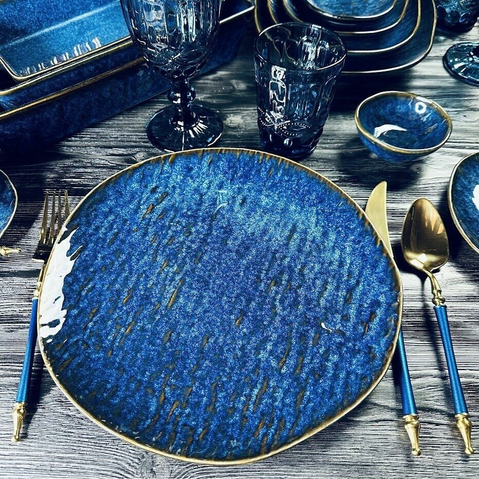 Коллекция AQUAMARINE изготовлена их фарфора, покрыта глянцевой цветной глазурью глубокого синего цвета с вкраплениями. Структура поверхности изделий имеет рельеф. Благодаря прочной и глянцевой глазури посуду легко мыть. Подходит для дома и для ресторанов.