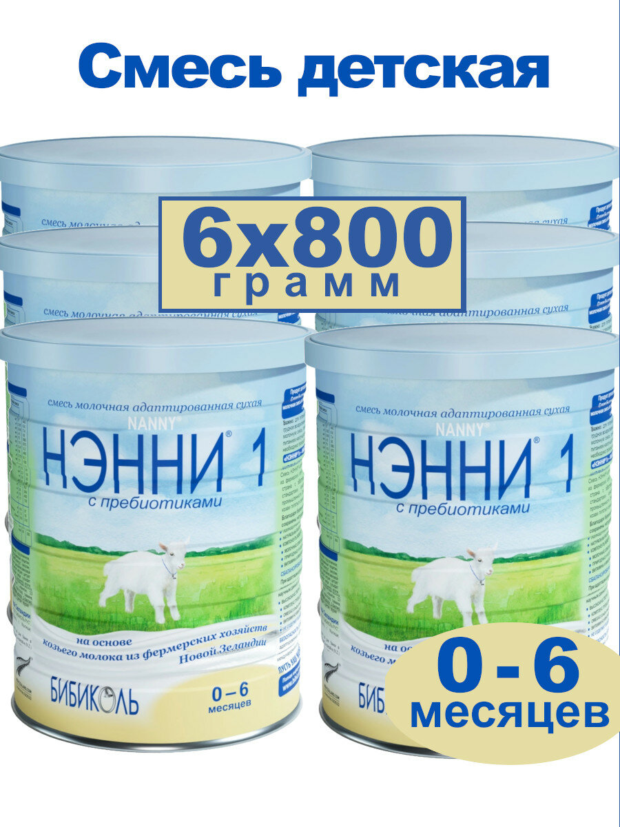 Набор 6х Смесь нэнни 1 с пребиотиками, с 0 до 6 месяцев, 800 г