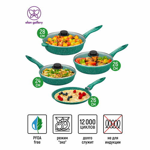 Набор 7 пр. Elan Gallery гармония Вкуса Изумруд Сковорода блинная 26 см, Сковороды 24 см, 26 см, 28 см, н/р, 3 крышки: сравнение цен, характеристики, фото, актуальное наличие и цены.
