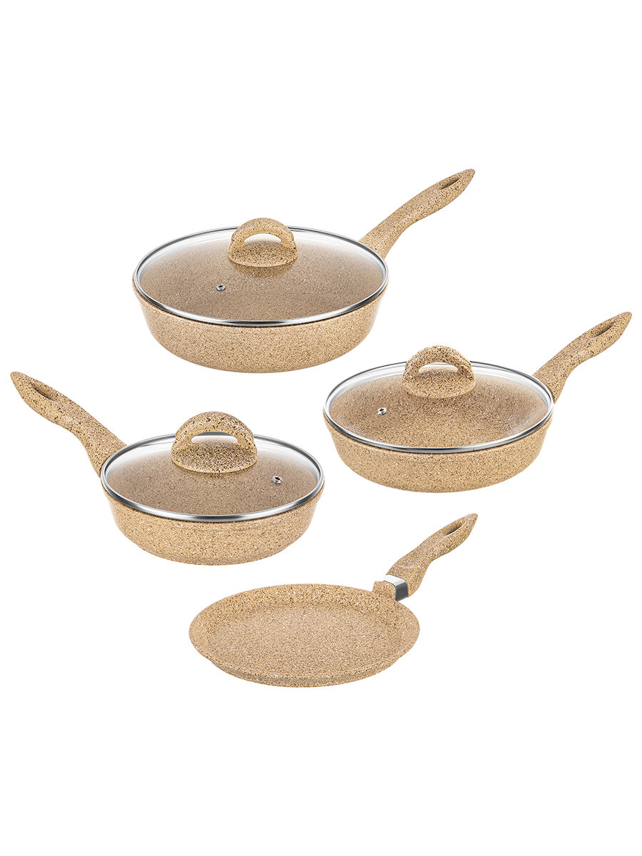 Купить Набор 7 пр Elan Gallery гармония вкуса Медовый гранит Сковорода блинная 22 см, Сковороды 18см,22см,26см, 3 крышки, н/р с доставкой по всей России.