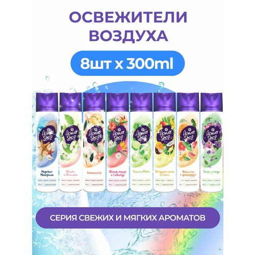 В набор входят 8 уникальных композиций: "Морские минералы", "Яблоко и жасмин" "Антитабак", "Мохито", "Цветущее манго и кокос", "Апельсин и грейпфрут", "После дождя", "Цветок тиаре и гибискус", чтобы вы могли подобрать то, что вам больше всего нравится. Каждый из них подойдет для использования в разных помещениях квартиры или дома. Спреи прекрасно подходят для применения в туалете, ванной комнате, на кухне или даже в автомобиле. Легкая текстура позволяет равномерно распылять средство без лишних следов.