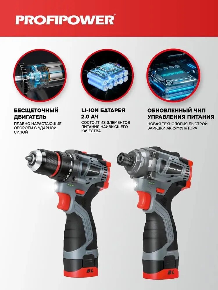 Купить Набор аккумуляторного бесщеточного инструмента PROFIPOWER 2в1: винтоверт BL-162 и шуруповерт BL-161 с доставкой по всей России. Набор аккумуляторного бесщеточного инструмента PROFIPOWER 2в1: винтоверт BL-162 и шуруповерт BL-161: сравнение цен, характеристики, фото, актуальное наличие и цены.