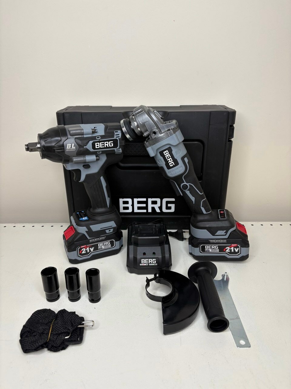 Купить Набор аккумуляторного инструмента berg 2 в 1 ушм (болгарка) + гайковерт 2200 Нм с доставкой по всей России.