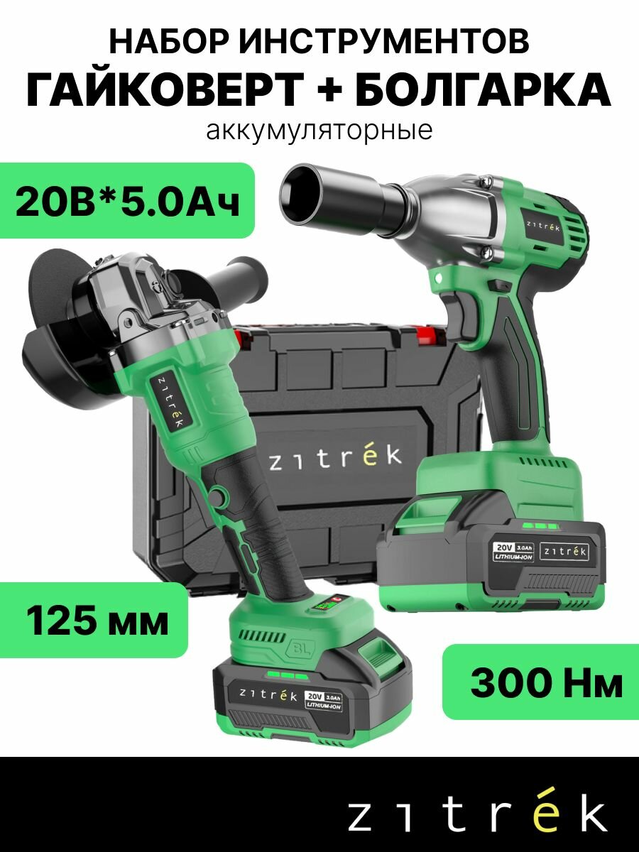 Набор аккумуляторного инструмента УШМ (болгарка) и гайковерт Zitrek в кейсе, 20В 2 АКБ 5.0 Ач: сравнение цен, характеристики, фото, актуальное наличие и цены.