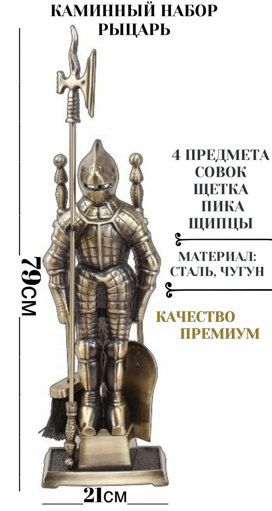 Купить Набор аксессуаров для камина Рыцарь из металла, 4 предмета, печей, каминный набор, бани, мангала с доставкой по всей России.