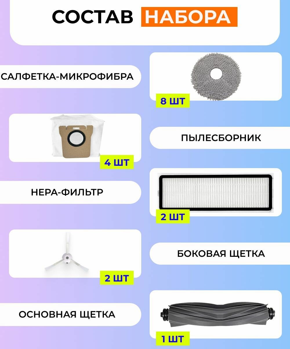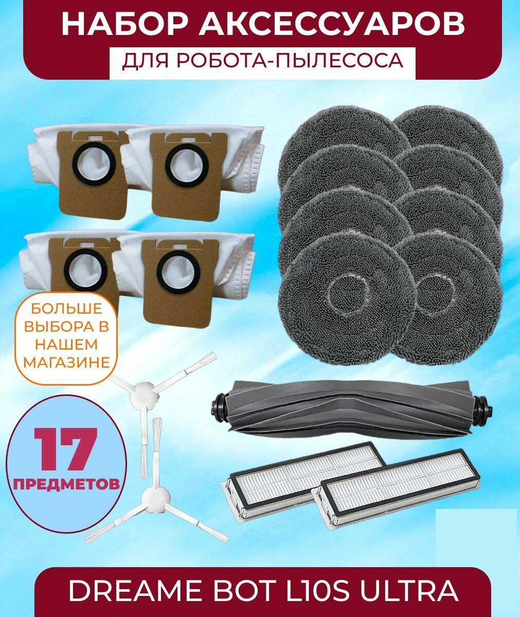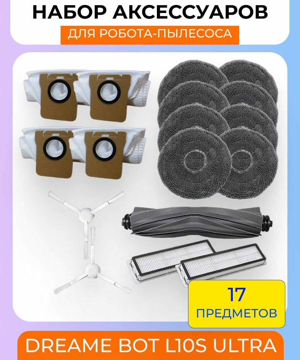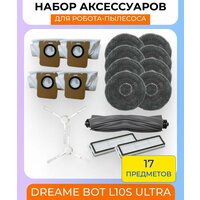 Для робота-пылесоса Dreame Bot L10S Ultra: основная щетка, 2 боковых щетки белые, 2 HEPA-фильтра, 8 салфеток микрофибра, 4 мешка для сбора пыли.: сравнение цен, характеристики, фото, актуальное наличие и цены.