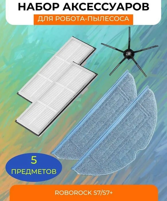 Аксессуары для робота пылесоса Xiaomi , Roborock S7 S7 Plus S7 Maxv Ultra T7s T7s Plus : тряпка микрофибра 2 шт, боковая щетка черная, нера фильтр 2 шт.
