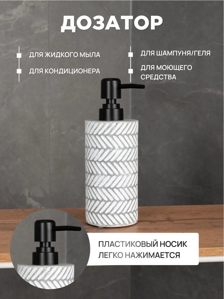 Мыльница и стакан создают удобное пространство на полке или раковине, а подставка для мыла помогает поддерживать порядок и чистоту в месте умывания, легко моется. Дозатор для жидкого мыла отлично подойдет также для шампуня или кондиционера. Этот набор мыльница и стакан для зубных щеток идеально комбинируются для создания гармоничного декора.
