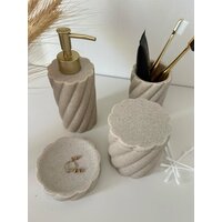 Преобразите вашу ванную комнату с этим стильным и функциональным набором аксессуаров для ванной комнаты. В комплект входит четыре предмета, выполненных в нежном бежевом цвете, которые идеально подходят для создания уютной и гармоничной атмосферы. Этот набор ванных принадлежностей незаменим для тех, кто ценит эстетику и качественные решения для обустройства пространства.