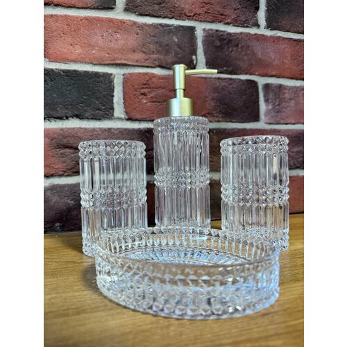 Набор аксессуаров для ванной комнаты, 4 предмета, стекло c золотым дозатором: сравнение цен, характеристики, фото, актуальное наличие и цены.